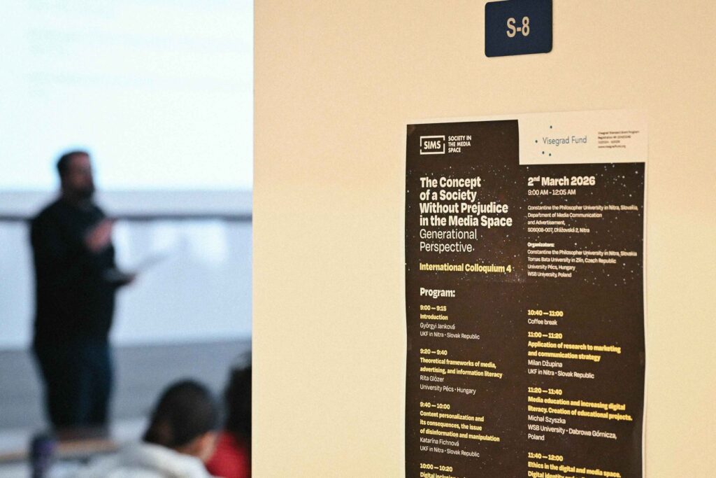 Dne 2. března 2026 se na Katedře masmediální komunikace a reklamy Filozofické fakulty Univerzity Konstantina Filozofa v Nitře uskutečnilo již čtvrté mezinárodní odborné kolokvium International Colloquium 4, realizované v rámci projektu Visegrad Fund – Visegrad Standard Grant 22420246 (10/2024 – 4/2026): The Concept of a Society Without Prejudice in the Media Space: Generational Perspective. Projekt propojuje partnerské univerzity ze Slovenska, České republiky, Maďarska a Polska – UKF v Nitře, Univerzitu Tomáše Bati ve Zlíně, University of Pécs a WSB University v Dąbrowě Górnicze – a zaměřuje se na výzkum digitální a mediální gramotnosti z hlediska mezigeneračních rozdílů.